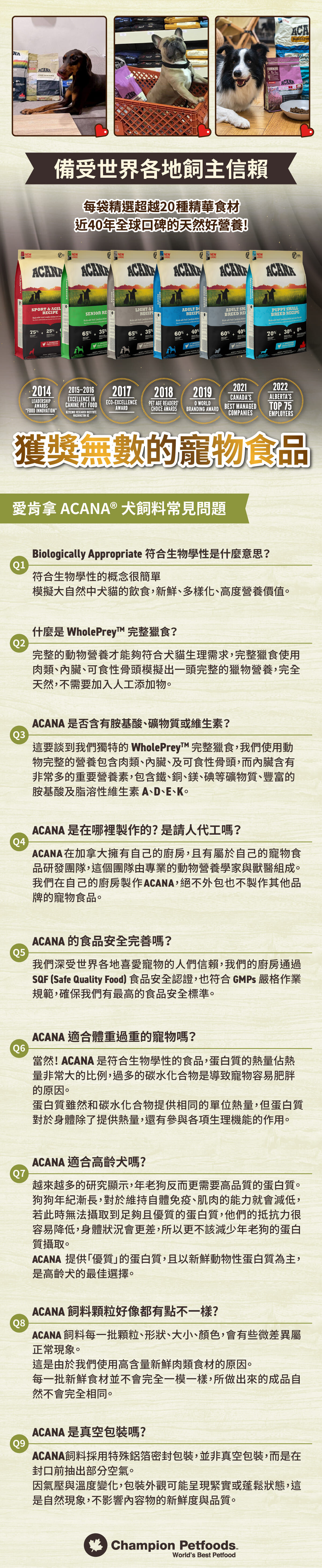 加拿大 ACANA Puppy Small Breed 無穀小型幼犬飼料,70%優質肉含量,多樣新鮮完整動物食材、豐富蛋白質和脂肪,滿足成長發育所需營養。