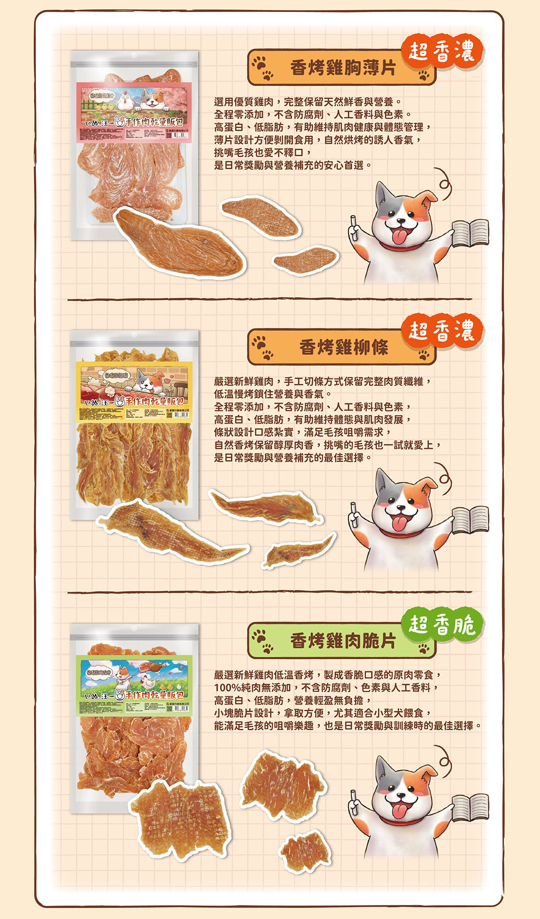 想給狗狗真材實料、吃得安心、越嚼越健康的零食?跟著汪老闆,每一口都是高品質